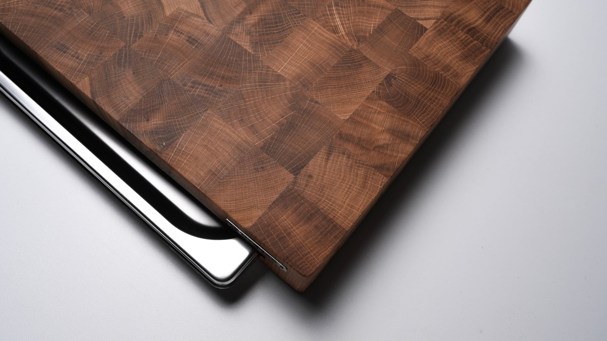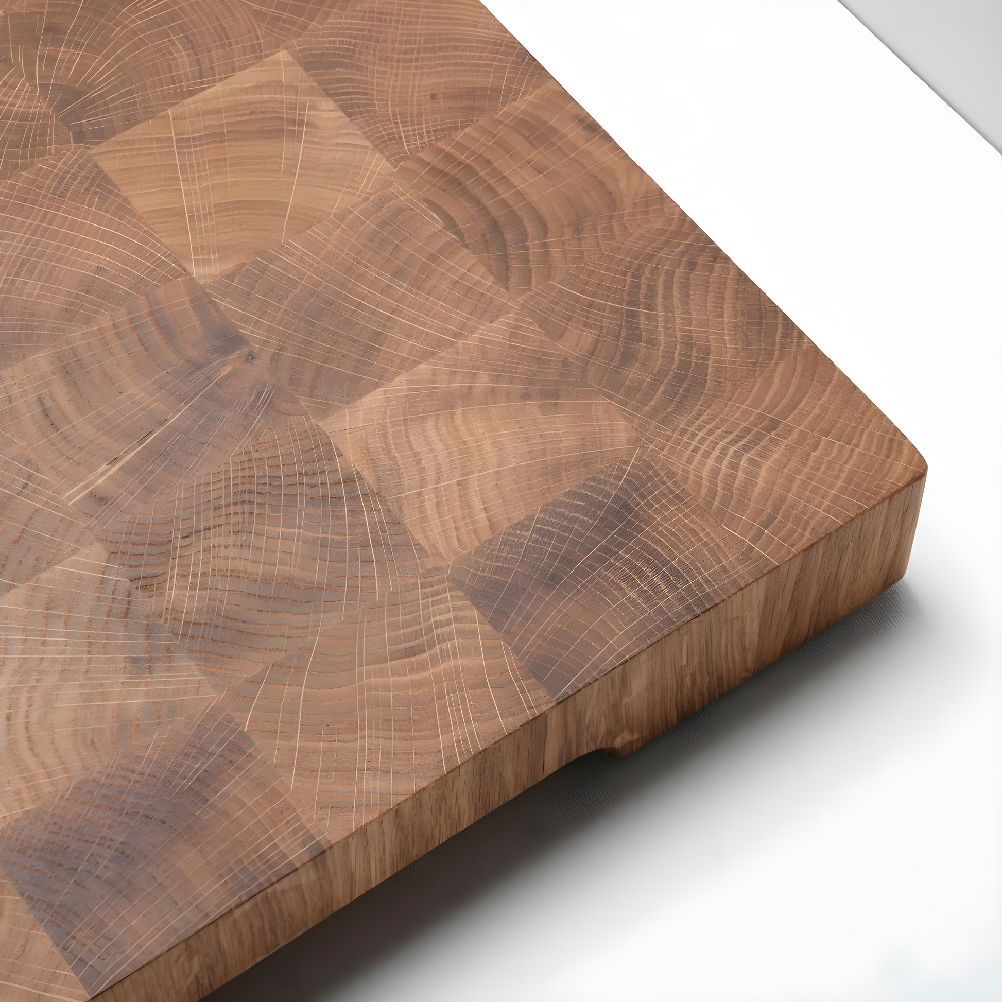 Das exklusive Schneidebrett aus massiver Eiche kombiniert Funktionalität, Langlebigkeit und Design. Dank der End-Grain-Konstruktion (Stirnholz) ist es besonders robust, messerschonend und besticht durch seine elegante Optik.